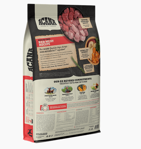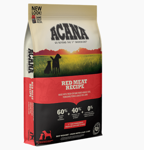 Our ACANA®recipes are thoughtfully crafted recipes from start to finish. ACANA Red Meat recipe is balanced with 60%* quality animal ingredients like ranch-raised beef and Yorkshire pork, and 40%+ fruits, vegetables, and botanicals. Artificial colors, flavors or preservatives are never added in our kitchen.