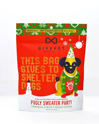 Cozy up with your pup and a bag of GIVEPET Pugly sweater party dog treat.